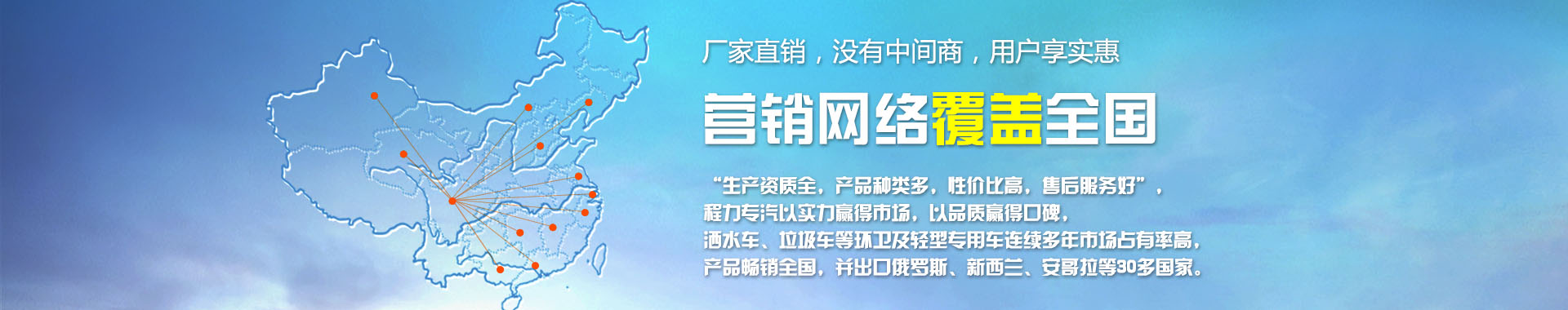 我公司致力于開發(fā)生產(chǎn)銷售專用汽車為已任,為您量身打造方便實(shí)用,耐用的專用汽車,其主導(dǎo)品種有園林綠化灑水車、環(huán)衛(wèi)灑水車、油罐加運(yùn)油車、吸糞車、吸污車、擺臂、掛桶、密封式垃圾車、廂式運(yùn)輸車、消防車、半掛車、自卸車、水泥車、隨車吊等八大系列100多個(gè)品種300多個(gè)車型。同時(shí)批發(fā)東風(fēng)、解放、福田等各種二類底盤。目前我公司銷售網(wǎng)絡(luò)基本已覆蓋全國各地,具體如下。